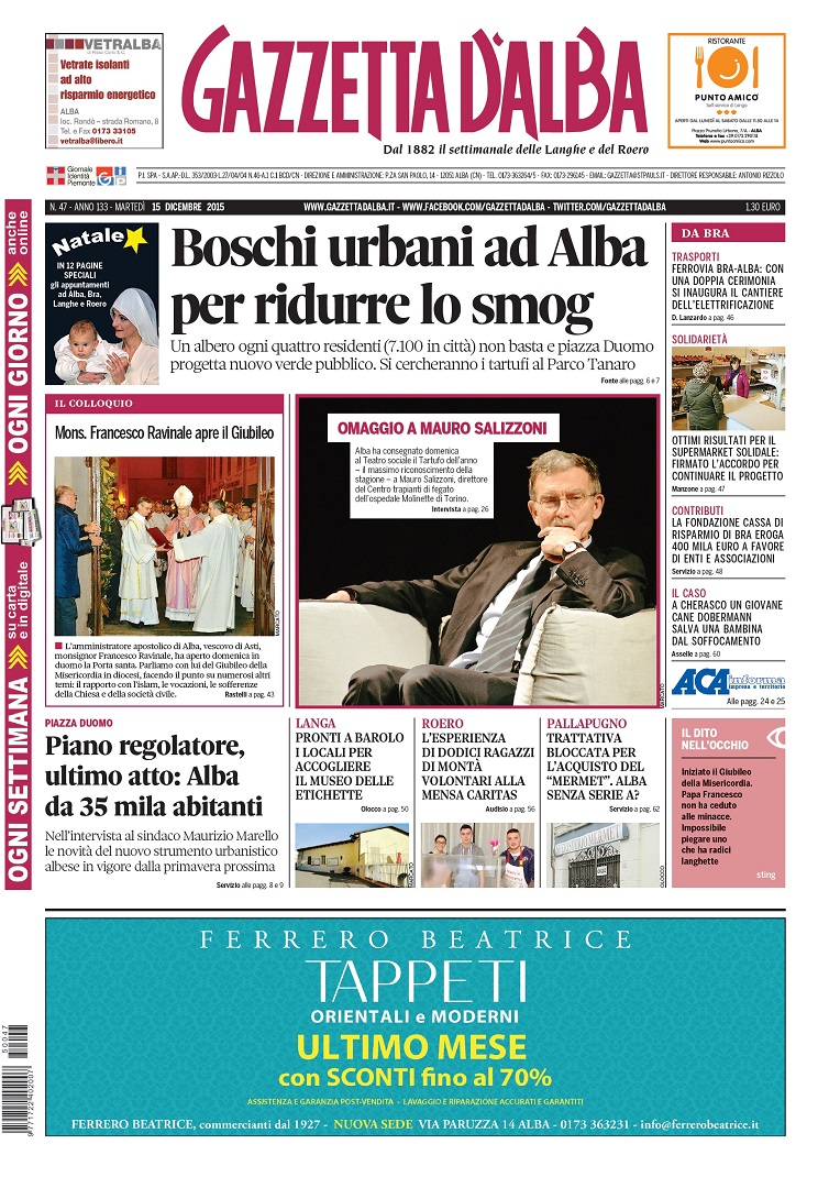La copertina di Gazzetta d’Alba del 15 dicembre 2015 14 Dicembre 2015 Alba, Primo Piano Versione accessibile ALBA La copertina del numero 47 di Gazzetta d’Alba, disponibile in edicola e in formato digitale a partire da martedì 15 dicembre 2015. Copertinaprima pagina