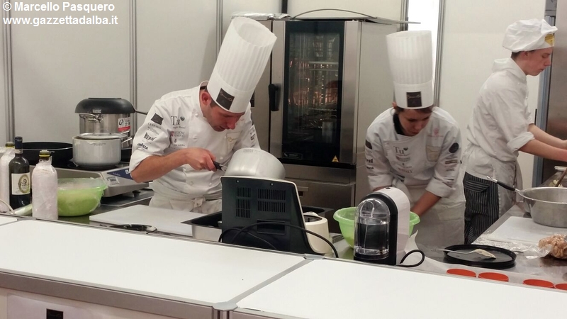Dalle 8 ai fornelli, il primo a entrare in gara è stato il cuoco di casa Stefano Paganini, titolare del ristorante “Alla Corte degli Alfieri” di Magliano. Quattro ore di tempo per preparare il piatto di pesce “Ricchezza e povertà”, utilizzando prodotti tipici di Langhe e Roero: tartufi e nocciole abbinati a storione e caviale. Mezz’ora più tardi: il bellissimo vassoio di carne “Un cervo tra le colline di Langhe e Roero”, molto apprezzato dai giudici.