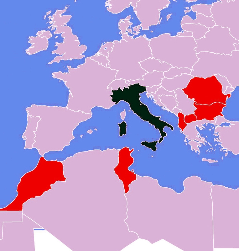 In rosso i principali Paesi di provenienza degli stranieri residenti ad Alba: Romania, Marocco, Albania, Macedonia, Bulgaria e Tunisia.