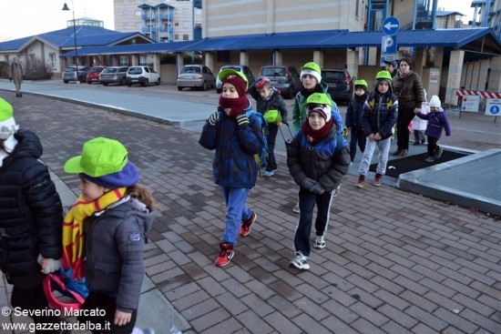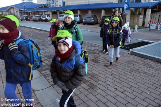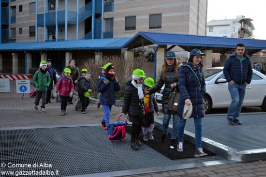 ALBA Martedì 12 gennaio ha debuttato la nuova linea Piedibus denominata “Tetti blu” con partenza da viale Masera, vicino alla sala Polivalente e arrivo alla scuola primaria “Gianni Rodari” di corso Europa. Una quindicina di bambini accompagnati da mamme volontarie, dal vicesindaco Elena Di Liddo e dall’assessore Luigi Garassino sono arrivati alla scuola in perfetto orario. La linea sarà garantita per tutto l’anno scolastico.