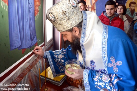 NEIVE La comunità macedone ortodossa di Neive, domenica scorsa, ha inaugurato la cappella di San Giovanni Battista, dove è stato collocato il fonte battesimale. Dopo la celebrazione della Messa nella chiesa di San Michele Arcangelo, si è svolta una solenne funzione officiata dal metropolita d’Europa Pincu, dal vescovo, e da padre Mihailo Matevski, per la benedizione del fonte.