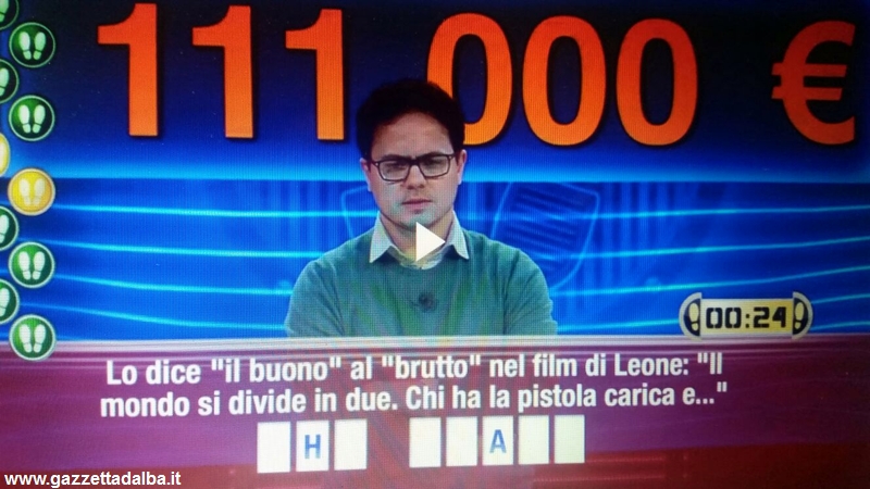 CASTAGNITO Continua l’avventura del super campione del programma televisivo di Canale 5 Caduta Libera, il castagnitese Alessandro del Gaudio. Il grafico roerino, dopo aver vinto martedì 2 febbraio 62 mila euro, ha sbaragliato la concorrenza per la settima puntata consecutiva, andata in onda giovedì 4 febbraio, arrivando a un passo dal montepremi di 111 mila euro. Del Gaudio ha risposto correttamente a 9 delle dieci domande del gioco finale “I dieci passi”. L’errore da 111 mila euro sulla domanda: “Lo dice il Buono al Brutto nel film di Leone: Il mondo si divide in due. Chi ha la pistola carica e…”. “Chi scava”, la risposta corretta che il castagnitese ha mancato finendo nella botola, punizione che il programma, condotto da Gerry Scotti, riserva a chi non riesca a rispondere a una domanda. Poco male perché Del Gaudio potrà tentare nuovamente domani, venerdì 5 febbraio (inizio alle 18.45), per l’ottava volta consecutiva l’assalto al montepremi.