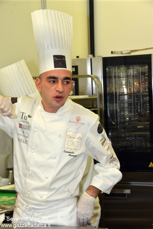 ALBA La giuria di grandi cuochi del Teatro sociale incorona Marco Acquaroli, trentenne chef bergamasco, del Four seasons des Bergues di Ginevra. Acquaroli rappresenterà l’Italia agli europei di Budapest, a maggio, portando un po’ di Alba lui che è stato aiuto chef al ristorante Piazza Duomo. Premiati per il miglior piatto di pesce Debora Fantini, unica donna in gara e Francesco Gotti per il miglior piatto di carne.