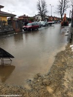 Allagata corso Einaudi a Cherasco. Autopompe al lavoro