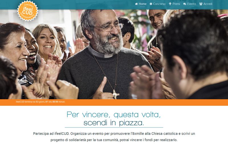 Il concorso ifeelCUD, giunto alla sua sesta edizione, promosso dalla Conferenza episcopale italiana durante la campagna per l’otto per mille si rinnova diventando più coinvolgente per le comunità locali. Ogni parrocchia potrà parteciparvi iscrivendosi su www.ifeelcud.it, creando un gruppo di lavoro, organizzando un evento locale per promuovere l’8xmille alla Chiesa cattolica e ideando un progetto di solidarietà per la propria comunità. Concorrerà così alla vincita di un contributo economico per la realizzazione dell’idea proposta.