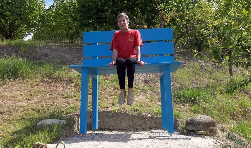 Per agevolare la salita sulla panca Paula ha piazzato una pietra di Langa che serve ad arrampicarsi. Un biglietto avvisa i visitatori che la responsabilità è a carico di ognuno, trattandosi di un’opera privata in un terreno privato. Quindi, in caso di danni, i proprietari non rispondono. Un nuovo fiore, dunque, colora le colline rodellesi, segno che l’arte è contagiosa e favorisce il desiderio di condividere la bellezza.