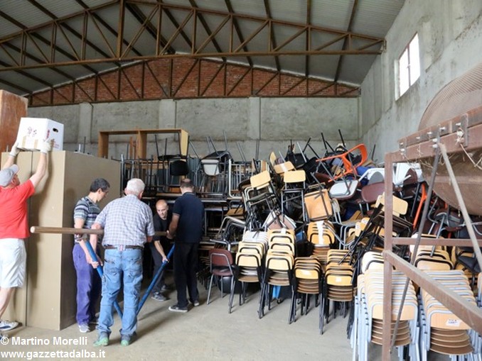 CERESOLE Circa sessanta ceresolesi hanno raccolto l’appello e collaborato al trasloco dei materiali scolastici per avviare la ristrutturazione interna mentre sono già in corso i lavori sull’esterno. La task force composta da soci di Pro loco, Alpini, Protezione civile, rifugiati ospiti di Cascina Belvedere, genitori e amministratori ha inscatolato sabato mattina, caricato i colli su un camioncino della Edilvetta e li ha immagazzinati in un capannone messo a disposizione da Gianluca Demaria. Una megaspaghettata ha poi ristorato tutti.