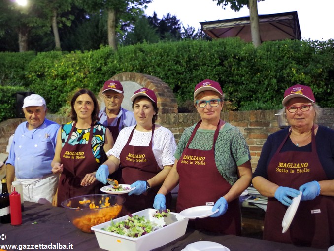 MAGLIANO Grande successo per “Magliano sotto le stelle”, organizzata nella serata di sabato 25 giugno. Oltre 800 i coperti, per una cena che ha invaso la zona antistante il castello del comune roerino. Solo specialità tipiche nel menù, come il vitello tonnato e i ravioli al plin, non dimenticando ovviamente le albicocche di produzione locale. Durante la serata, è stata anche presentata la mostra di Margherita Mauro, visitabile fino al 31 luglio nei locali del castello, ed è stata consegnata da Michel Zorzan, ex sindaco della città francese gemellata Riez, una borsa di studio a Camilla Aloi. Frutto dei proventi dell’anno 2014, la borsa del valore di 1.000 euro viene destinata ogni ai figli di vittime di incidenti sul lavoro in agricoltura.