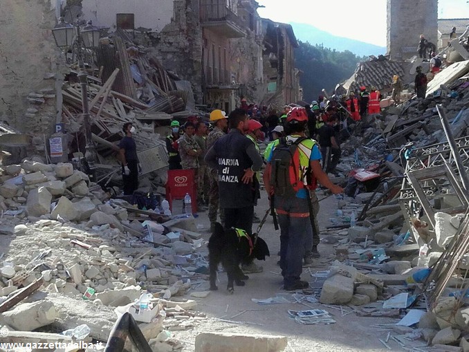 ALBA Sul numero di Gazzetta d’Alba in edicola da domani, martedì 30 agosto, pubblichiamo un ampio servizio sugli albesi impegnati nei soccorsi alle popolazioni colpite dal terremoto. Tra i primi a partire ci sono i volontari delle Misericordie Santa Chiara, che hanno allestito un campo per gli sfollati e gli operatori dell’Associazione nazionale carabinieri con i loro cani da ricerca.