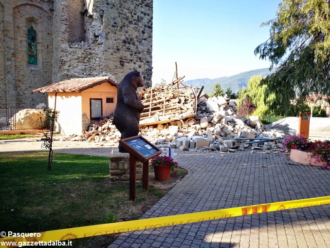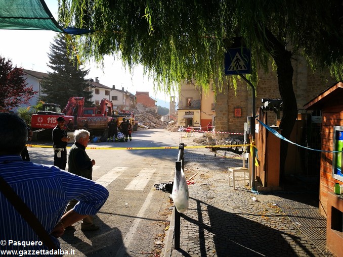 Incontriamo Massimo La Pietra, funzionario della Protezione civile e partiamo alla volta di Amatrice. 65 chilometri, molti dei quali su strade di montagna, gli stessi percorsi dai primi mezzi di soccorso la notte del 24 agosto. Passiamo attraverso decine di incantevoli paesini risparmiati dal terremoto. Solo nei pressi di Amatrice iniziamo a percepire la portata dell’accaduto scorgendo la mole del caseificio “Amatrice”, un edificio lungo trenta metri rimasto intatto, ma sprofondato nel terreno per oltre un metro. È una contraddizione: casette moderne rimaste intatte (circondate da tende perché nonostante l’agibilità delle case, gli abitanti hanno paura dell’ennesima scossa) accanto ad edifici che sembrano esplosi. Passiamo di fianco al ponte che stanno costruendo a tempo record i tecnici del Genio militare, ponte che sarà inaugurato poche ore dopo.
