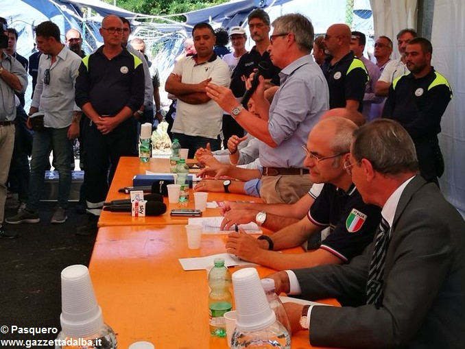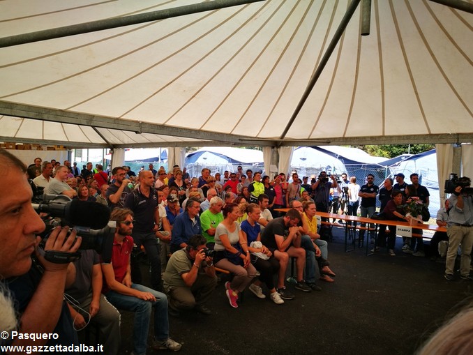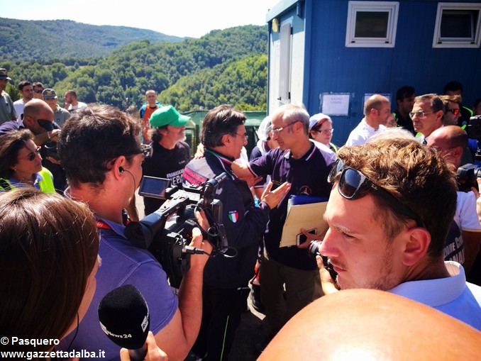 La gente del campo si sveglia presto. I primi commenti vertono sull’aver sentito o meno l’ennesima scossa. Dalle 7 i volontari preparano brioches, caffè e latte per la colazione. Nulla è lasciato al caso per rendere la permanenza degli sfollati il più piacevole possibile. I ragazzi della Protezione civile iniziano a lavorare per preparare il campo alla visita del commissario per la ricostruzione Vasco Errani, del presidente della Regione Nicola Zingaretti e del capo della Protezione civile Fabrizio Curcio. Quest’ultimo sottolinea, incontrando Roberto Cerrato, l’apporto che Proteggere insieme avrà nel recupero dei beni culturali dell’area. Da Errani arriva la promessa che in sette mesi tutti gli accumolesi avranno a disposizione un modulo abitativo. La gente della tendopoli fa domande, c’è la paura di non tornare più al paese, il timore che i negozi restino chiusi. Nel complesso però le risposte di Errani e Curcio portano una ventata di ottimismo.