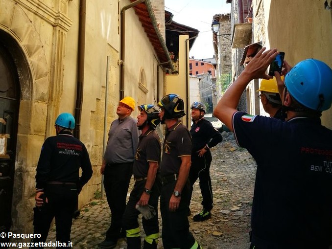 Il nostro viaggio verso il Centro Italia comincia alle 4 di venerdì 2 settembre. A bordo di un mezzo di Proteggere insieme si parte da Alba con il presidente Roberto Cerrato, il responsabile operativo Renzo Coral e Antonio Anghelone, il capo della logistica. L’obiettivo: concordare con i vertici della Protezione civile tempi e modalità dell’intervento di Proteggere insieme che da un anno e mezzo è diventata un’associazione nazionale e dispone dell’unica colonna mobile specializzata nel salvataggio e nella salvaguardia dei beni culturali. Tra gli scopi della missione anche individuare un’opera specifica dall’alto valore simbolico alla quale destinare i soldi della raccolta fondi di Proteggere insieme. Lungo il percorso soccorriamo un’auto di vigili del fuoco volontari rimasta in panne e intorno a mezzogiorno siamo nel Dicomac di Rieti, il centro di controllo di tutti i soccorsi nella zona del sisma.