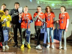 Nella foto i ragazzi della squadra vincitrice dello spettacolo ludico-formativo di orientamento scolastico svoltosi a Bra mercoledì 19 ottobre; da sinistra: Edoardo Ghirardo (Bra); Alessia Baggio (Bra); Serena Diaz (Roreto di Cherasco); Luisa Morra (Cherasco).