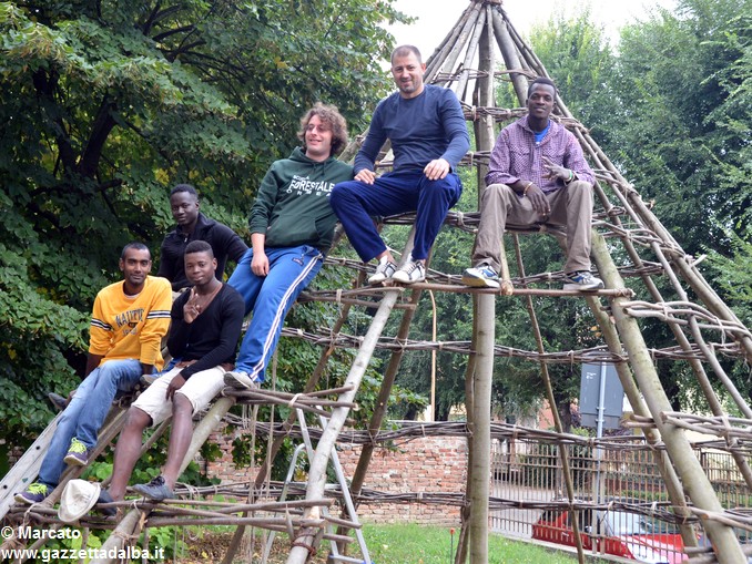 La realtà? I profughi stanno costruendo la struttura ramo dopo ramo, legandoli insieme secondo un preciso stratagemma architettonico. Entro due o tre settimane il progetto sarà ultimato. E i ragazzi torneranno a vivere a tempo pieno nella loro residenza temporanea di via Pola, gestita dal direttore della Caritas diocesana di Alba don Luigi Alessandria. Qui aspetteranno di ottenere asilo politico nel nostro Paese.