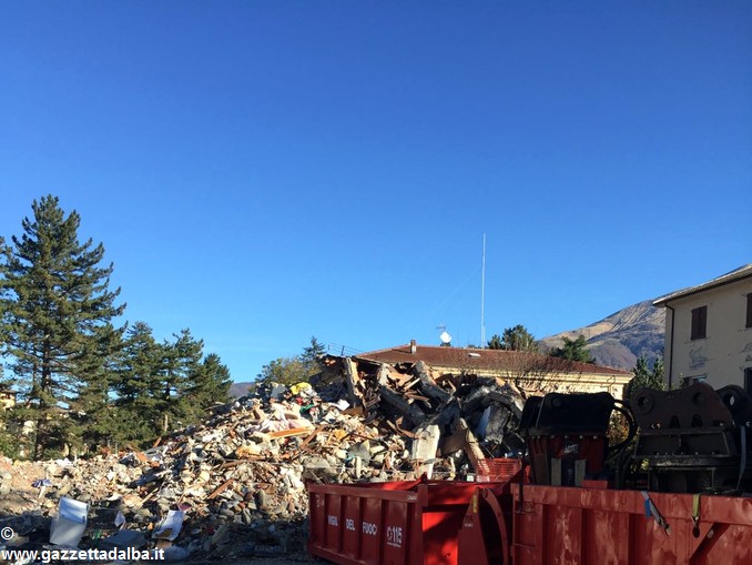 «Lei è il primo collega sindaco del Piemonte che viene a trovarci, a vedere dal vero». Sergio Pirozzi, primo cittadino di Amatrice allarga le braccia ad avvolgere in un solo gesto gli uffici comunali compressi in due container e Giampiero Novara, il sindaco di Govone che, insieme ad altri otto concittadini, rappresentanti delle diverse associazioni del paese, ha raggiunto uno dei paesi più colpiti dal sisma del 24 agosto per consegnare di persona un assegno da 11.381 euro.