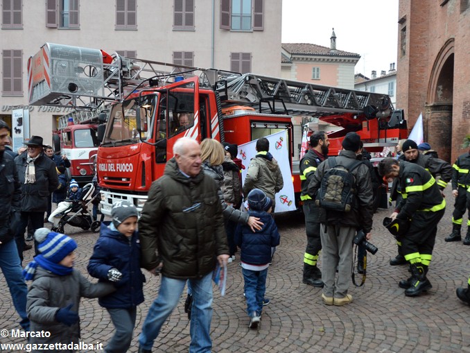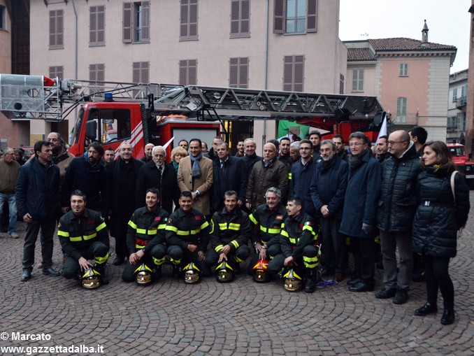 ALBA Grande e allegra la festa, sabato 3 dicembre in piazza Risorgimento, per la consegna ai Vigili del Fuoco dell’autoscala, acquistata grazie al buon esito di una raccolta fondi promossa dall’associazione Famija Albèisa, alla quale la Ferrero ha aderito con generosità donando quasi il 90 per cento della cifra necessaria.