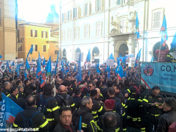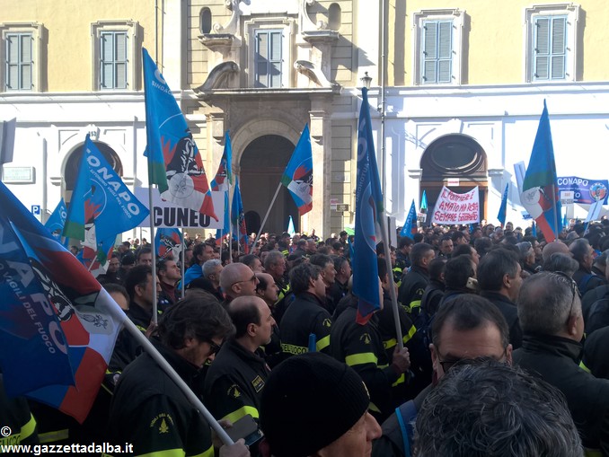 In 18 sono partiti dal comando provinciale Vigili del fuoco di Cuneo e assieme ai colleghi provenienti da tutta Italia hanno riempito Piazza Montecitorio, chiedendo parità con gli altri corpi di polizia sotto il profilo retributivo e pensionistico perché «Non vogliamo continuare a essere considerati cittadini di serie B», dichiara il segretario provinciale Conapo di Cuneo Christian Molfetta.