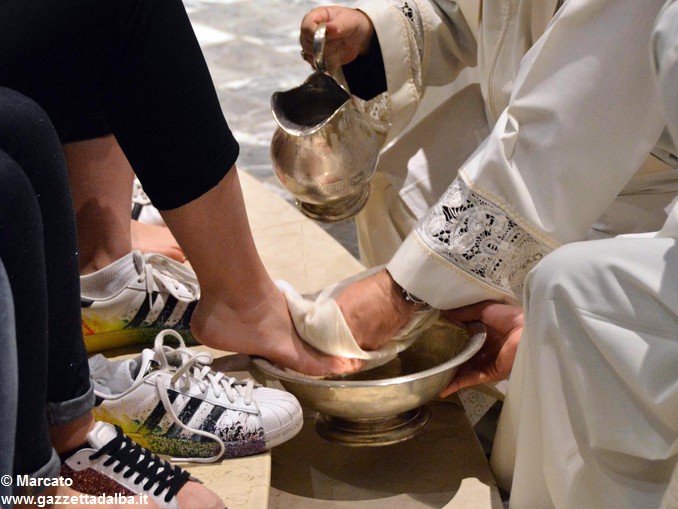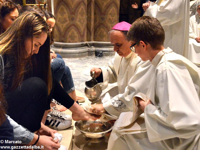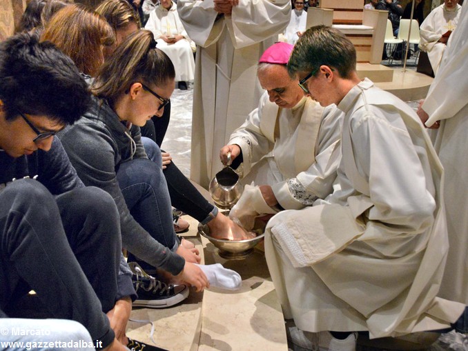 Alle 21, sempre in cattedrale, il Vescovo di Alba ha celebrato la Messa In coena Domini e compiuto il rito della lavanda dei piedi, a cui si riferiscono le foto qui sotto.