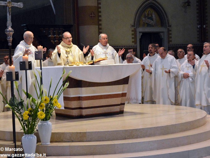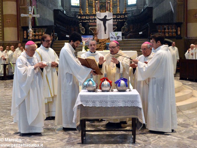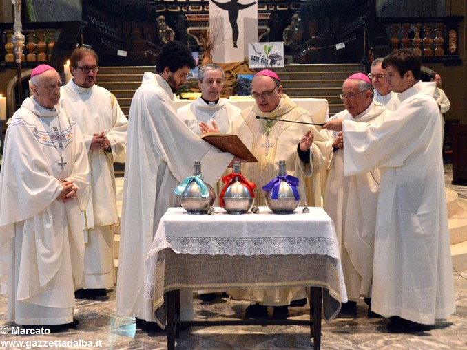ALBA Nel giorno del Giovedì santo, ieri, 13 aprile, il vescovo di Alba, monsignor Marco Brunetti, ha presieduto alle 9.30 in cattedrale, la Messa del Crisma a cui si riferiscono le foto qui sotto. A concelebrare, insieme a monsignor Brunetti, i due Vescovi emeriti, monsignor Sebastiano Dho e monsignor Giacomo Lanzetti. Folta e sentita la partecipazione dei fedeli alla funzione, che è stata accompagnata dai canti solenni del coro del duomo, a cui si sono unite le voci di tutti i sacerdoti della Diocesi e dei ragazzi che riceveranno la Cresima quest’anno.