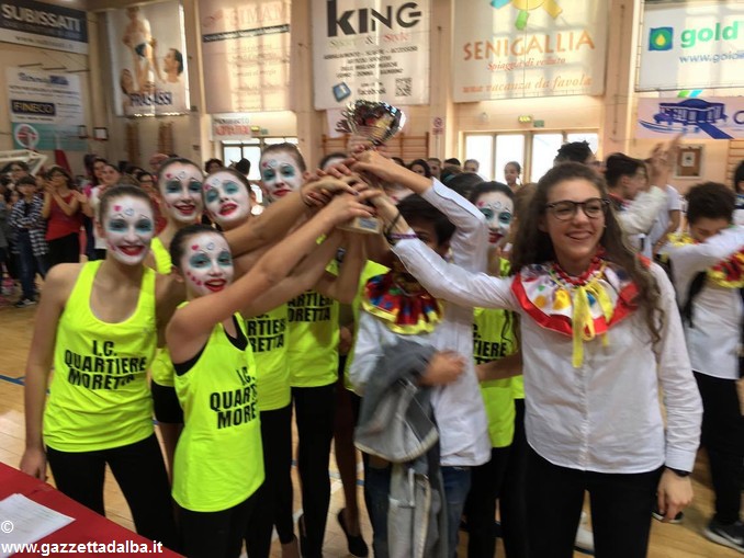 La squadra albese dell’istituto comprensivo Moretta, salita sul podio con un ragguardevole secondo posto, ha ottenuto una Menzione speciale per la peculiarità dell’esecuzione, che ha visto protagoniste le ginnaste delle classi prima, seconda e terza, esibirsi a ritmo dei brani eseguiti dal vivo dall’orchestra scolastica, composta dagli studenti delle classi seconda e terza della sezione ad indirizzo musicale.
