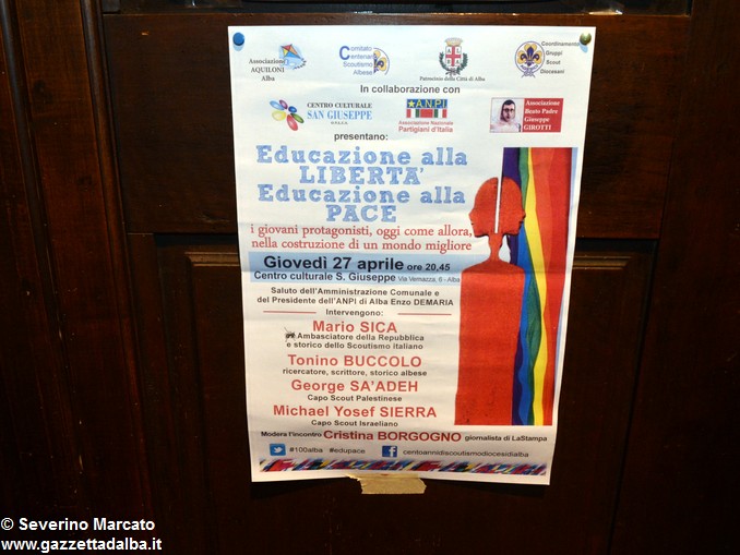 ALBA Tra le iniziative per celebrare i 100 anni dello scoutismo albese (1916-2016) rientra anche il raduno annuale dei rovers e delle scolte della zona Cuneo. Sabato 29 e domenica 30 aprile i giovani dai 16 ai 20 anni sono ospiti della Società San Paolo e vengono coinvolti in attività educative, laboratori, stands ed altro. Tra di loro ci sono anche George Issa Saadeh, capo scout arabo palestinese, e Michael Sierra capo scout israeliano.