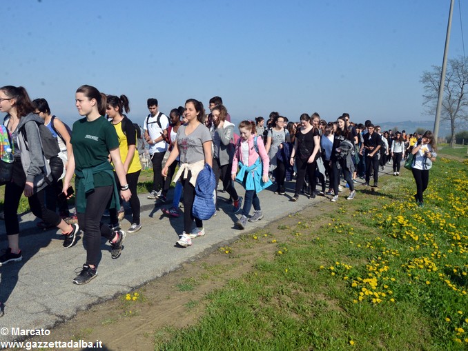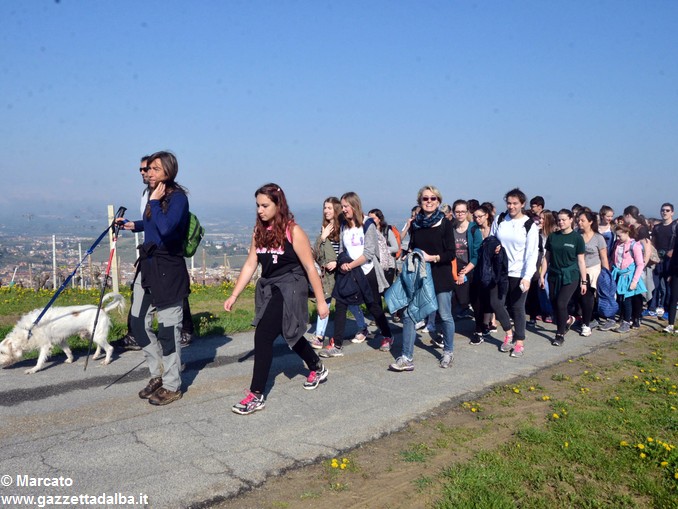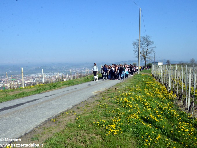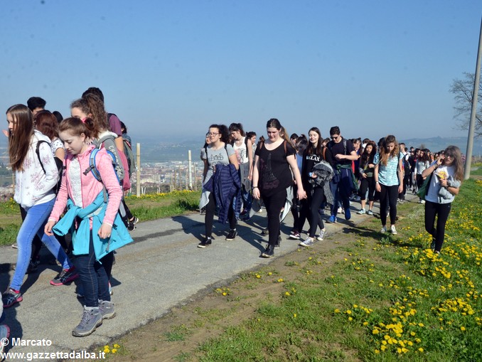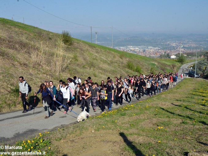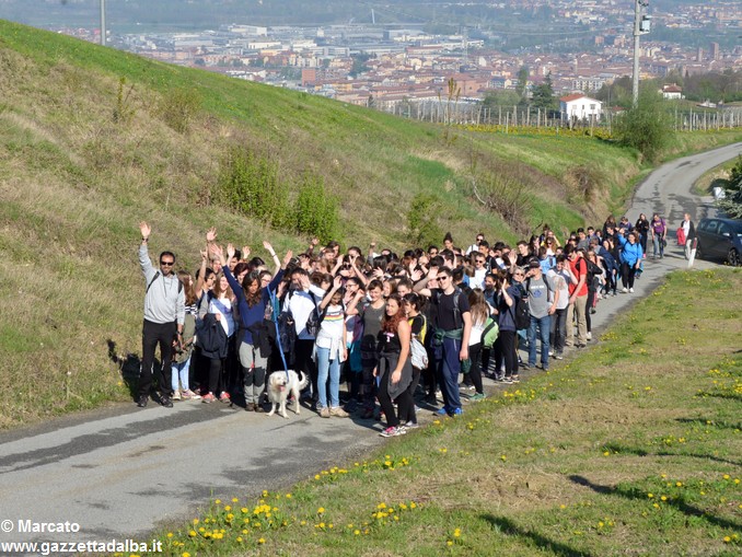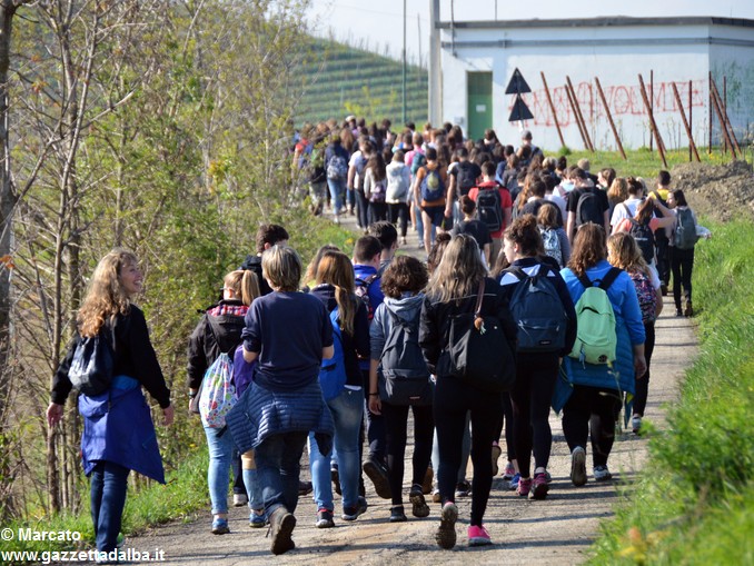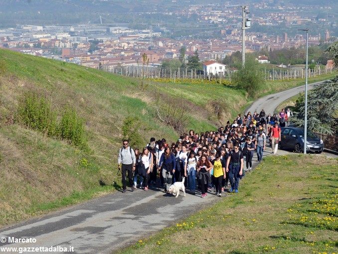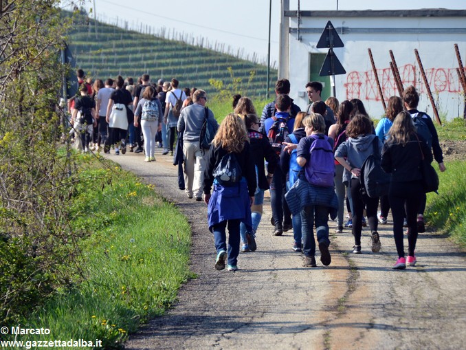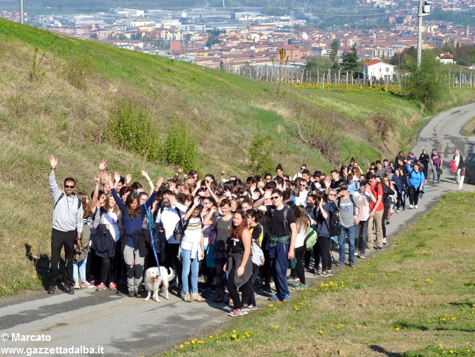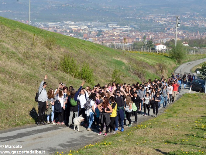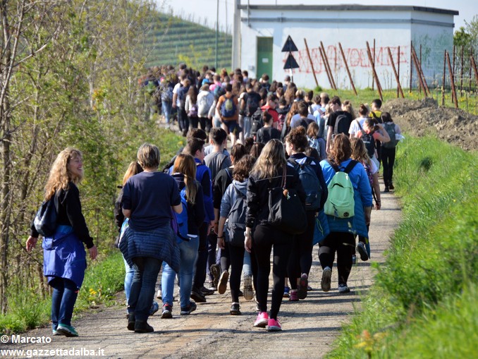 ALBA Erano circa 150 i ragazzi provenienti da quattro nazioni che ieri, lunedì 3 aprile, si sono dati appuntamento davanti al liceo Leonardo da Vinci per una passeggiata alla scoperta delle colline albesi e dei luoghi fenogliani.