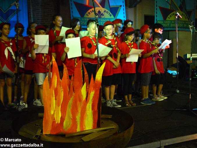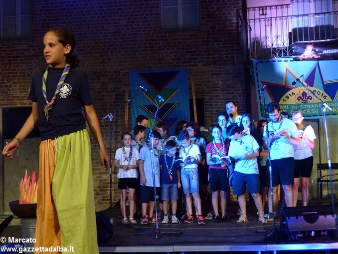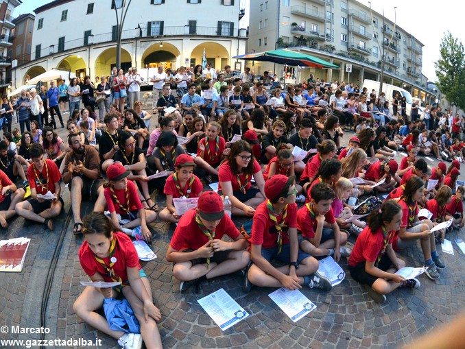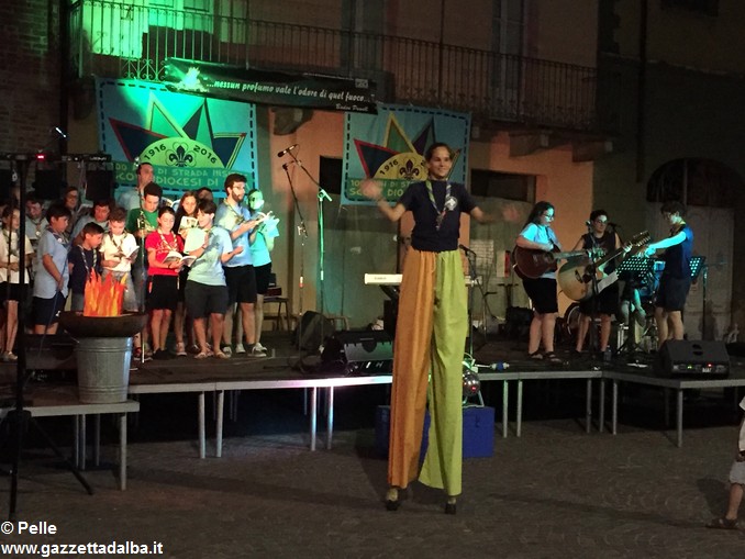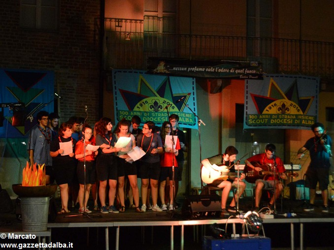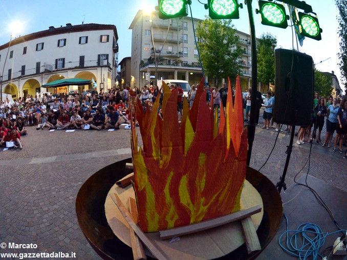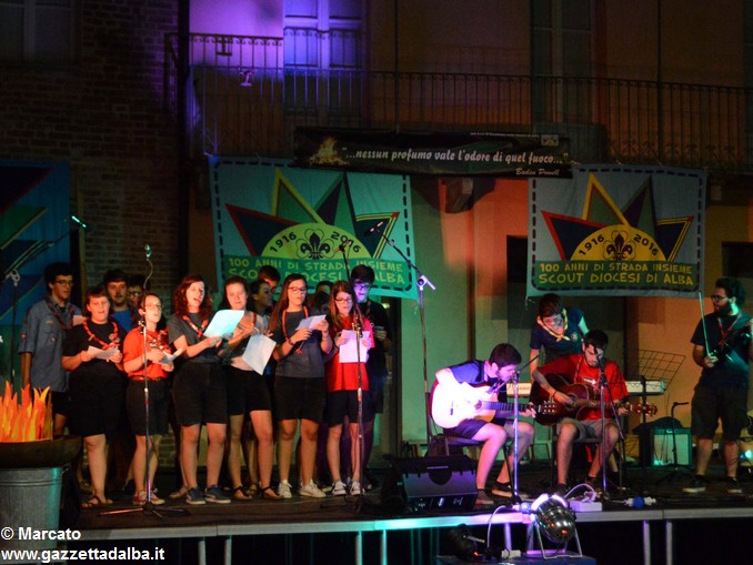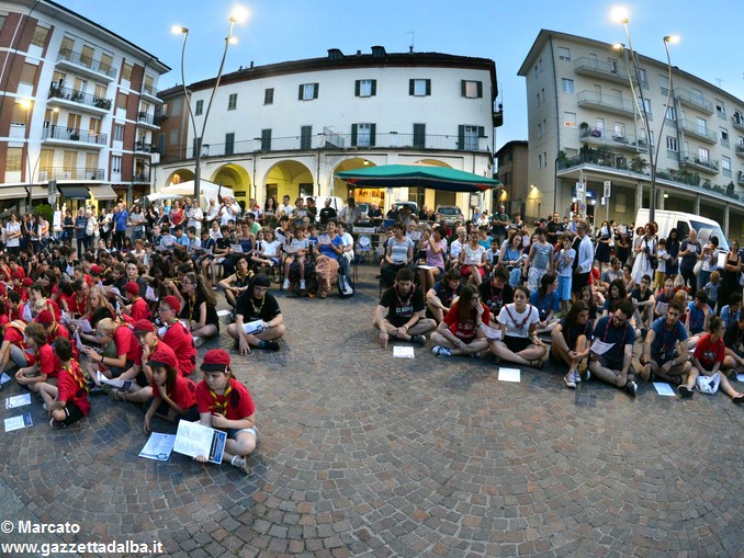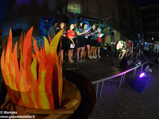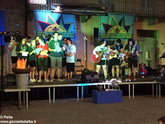 ALBA Un grande fuoco di bivacco con, attorno, i rappresentanti di tutti i gruppi scout di Alba e dintorni. Nulla di meglio per celebrare ancora i 100 anni dello scoutismo albese. Ma, volendo portare il “fuoco” nel centro della città e coinvolgere così non solo chi scout lo è o lo è stato (e, nel caso, lo resta per sempre), ma anche tutti gli albesi, del fuoco si è riprodotta l’atmosfera accogliente e festosa, ieri, giovedì 15 giugno, in piazza Pertinace.