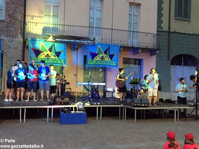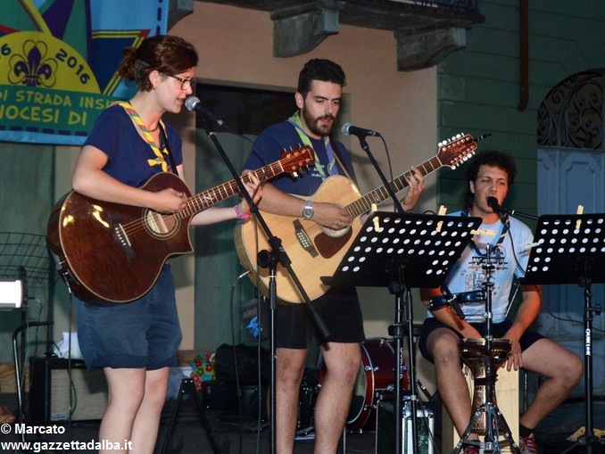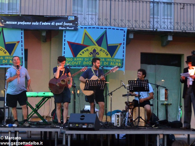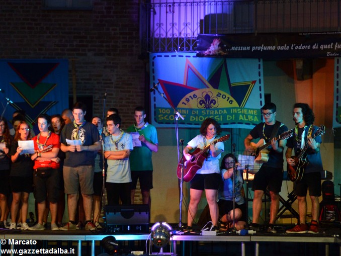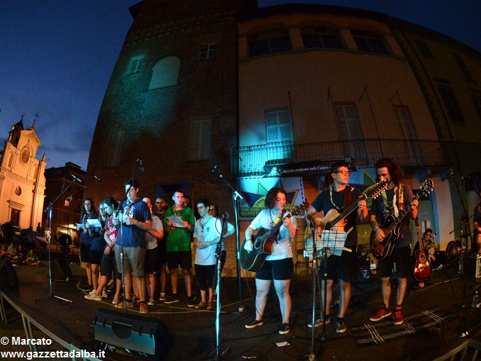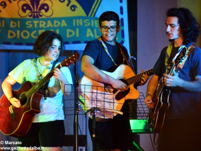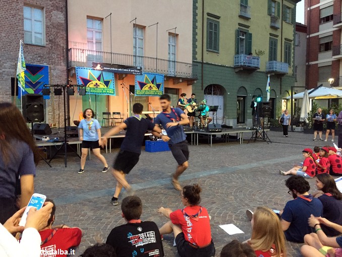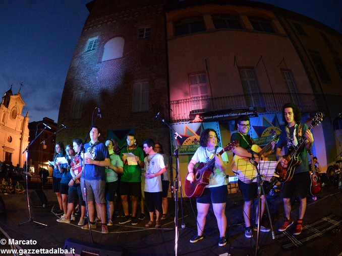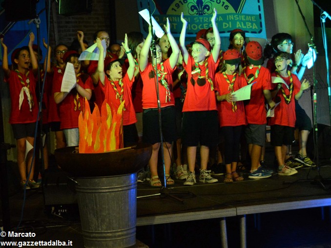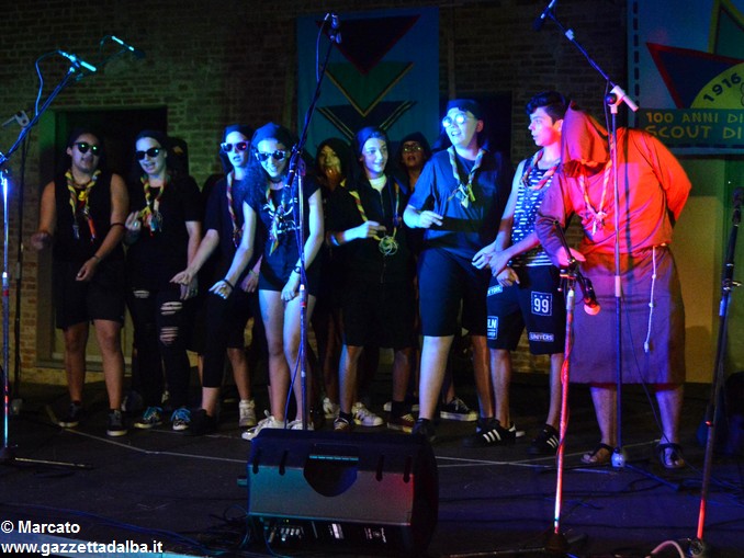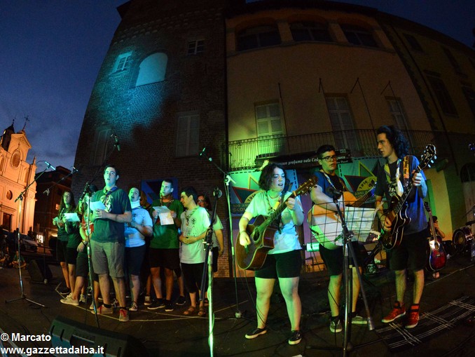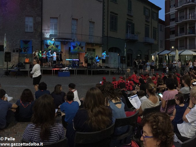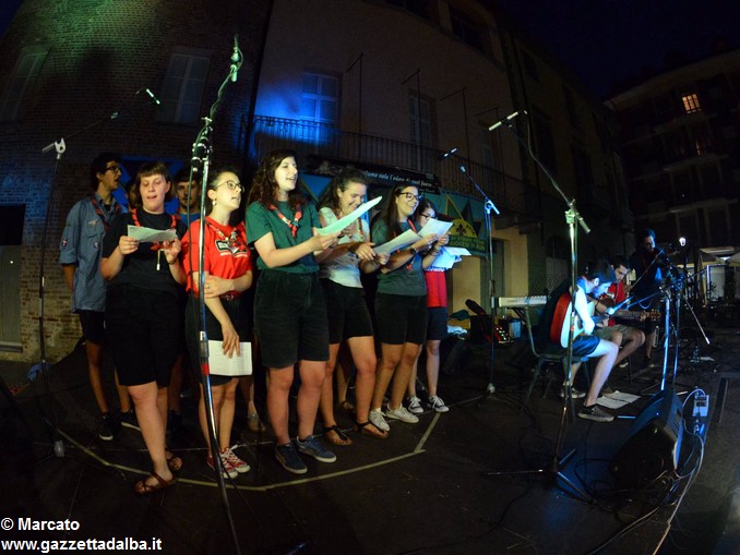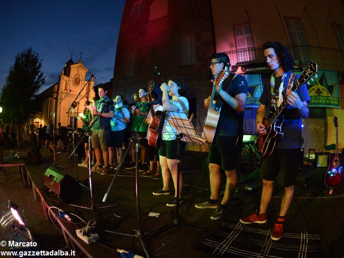 I gruppi Alba-Roero, Alba 1, Alba 7 e Canale si sono alternati sul palco intonando i canti che vengono fatti abitualmente intorno al fuoco, nelle lunghe sere estive, quando tutti si sentono accolti, anche chi ha appena preso in mano una chitarra segue i più esperti, con l’entusiasmo di provarci, gli stonati cantano senza timore di giudizio, i timidi ballano, i più intraprendenti raccontano storie divertenti che scatenano cascate di risa.