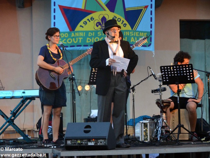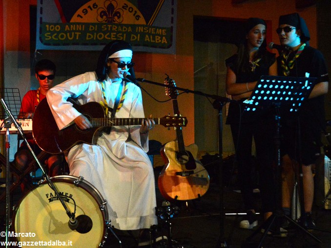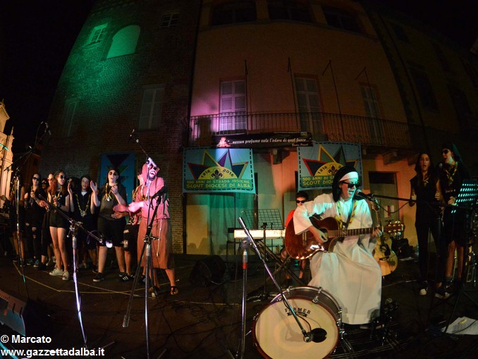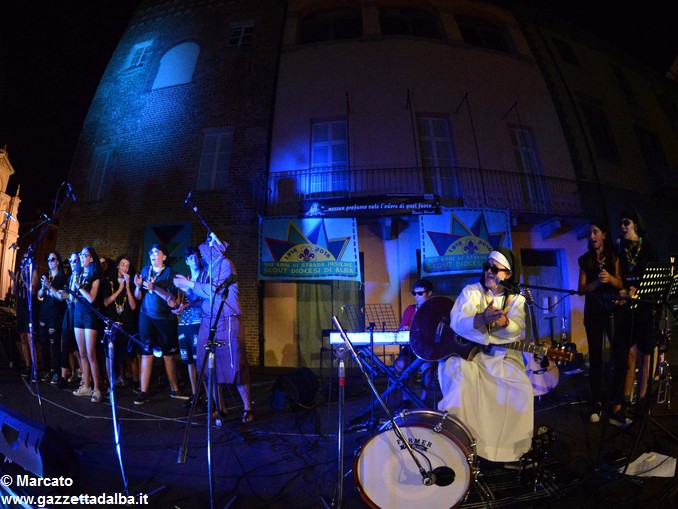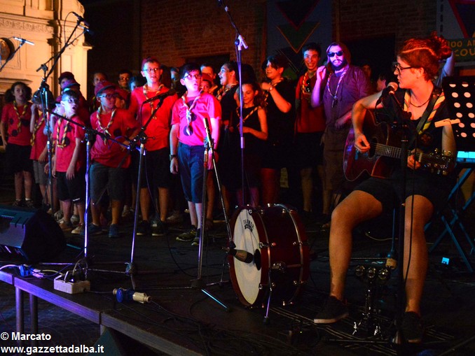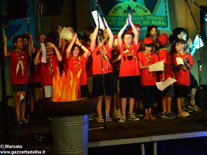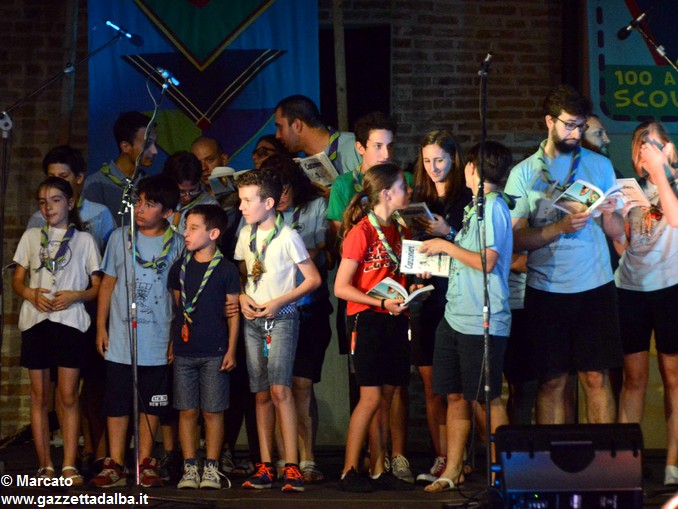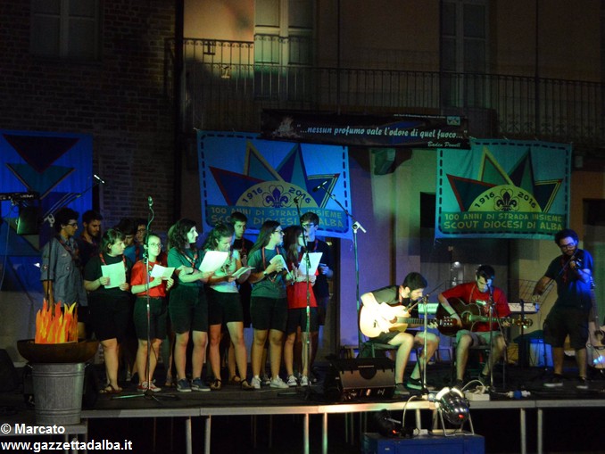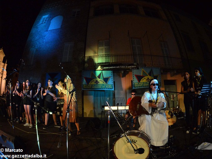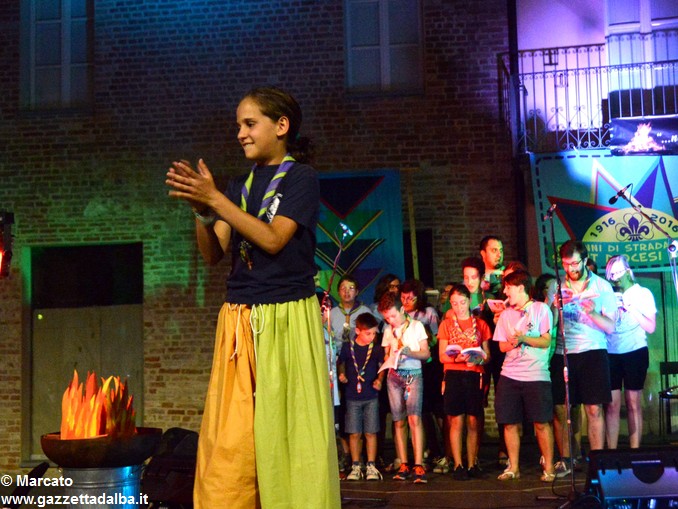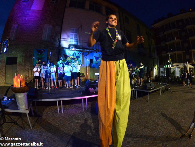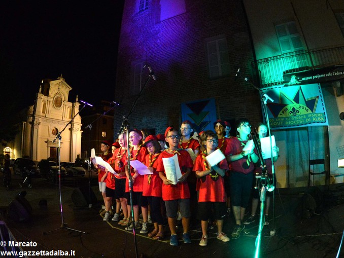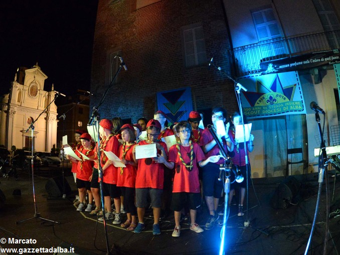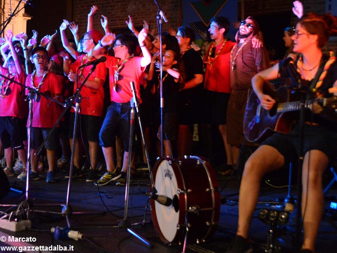 I gruppi Alba-Roero, Alba 1, Alba 7 e Canale si sono alternati sul palco intonando i canti che vengono fatti abitualmente intorno al fuoco, nelle lunghe sere estive, quando tutti si sentono accolti, anche chi ha appena preso in mano una chitarra segue i più esperti, con l’entusiasmo di provarci, gli stonati cantano senza timore di giudizio, i timidi ballano, i più intraprendenti raccontano storie divertenti che scatenano cascate di risa.