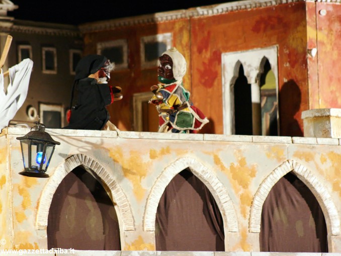 Alle 22 Paolo Papparotto insieme a Cristina Marin (Treviso), animeranno la piazza con Arlecchino e il bragosso fantasma, uno spettacolo dagli accenti favolistici ambientato a Venezia, città magica per eccellenza, che prevede il gioioso coinvolgimento del pubblico dei bambini. L’artista che dal 1982 si specializza in burattini della tradizione veneta e in Commedia dell’Arte, ha realizzato un lungo lavoro di recupero, in modo originale e moderno, del carattere autentico delle maschere veneziane, che si era ormai quasi perduto nelle baracche burattinesche. Nello spettacolo “Una misteriosa barca è attraccata durante la notte nel canale sotto la casa di Pantalone…una tartana?…una feluca? Un sampan? Ma no… è un bragosso! a quando è apparsa cose inquietanti, mostri mitologici, esseri diabolici cominciano a movimentare la normale vita di Campo della Misericordia. Andranno affrontati da Arlecchino con coraggio e con l’aiuto dei bambini!”.