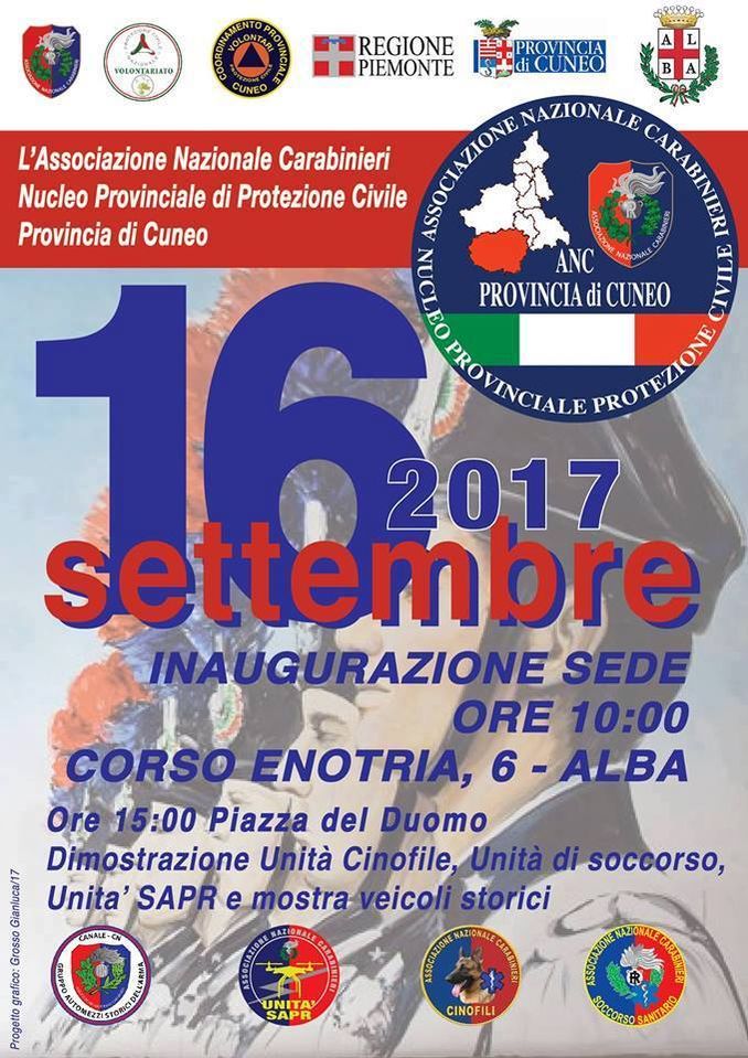 La giornata di sabato 16 settembre vedrà al mattino il momento istituzionale relativo all’inaugurazione della sede con intitolazione alla memoria del generale Romano Marchisio, fondatore dei Gis; nel pomeriggio si terrà una dimostrazione, in piazza Risorgimento, delle unità cinofile e dei droni in forza all’Associazione nazionale carabinieri. Sarà presente in piazza anche il gruppo veicoli storici dell’arma che esporrà mezzi del passato e moderni in dotazione ai carabinieri.