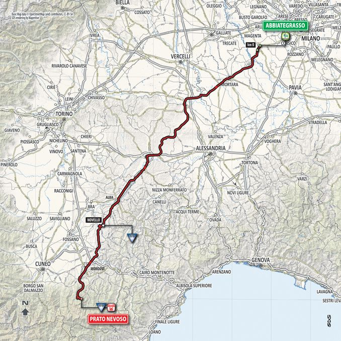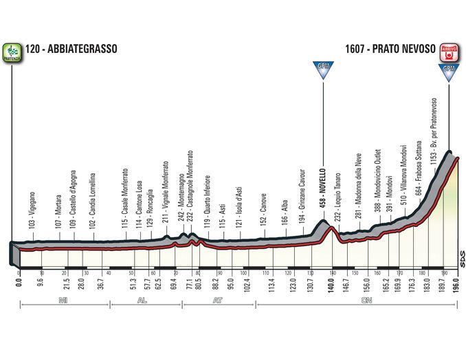 La frazione (196 chilometri) partirà da Abbiategrasso e transiterà anche nella nostra zona. Il percorso (che prima di maggio potrebbe ancora subire modifiche) prevede il passaggio da Asti, Isola d’Asti, Canove di Govone, Alba, Grinzane Cavour, Novello, Lequio Tanaro e Mondovì. Nel finale i corridori passeranno da Villanova Mondovì e Frabosa per poi affrontare la salita verso i 1.607 metri di Prato Nevoso.