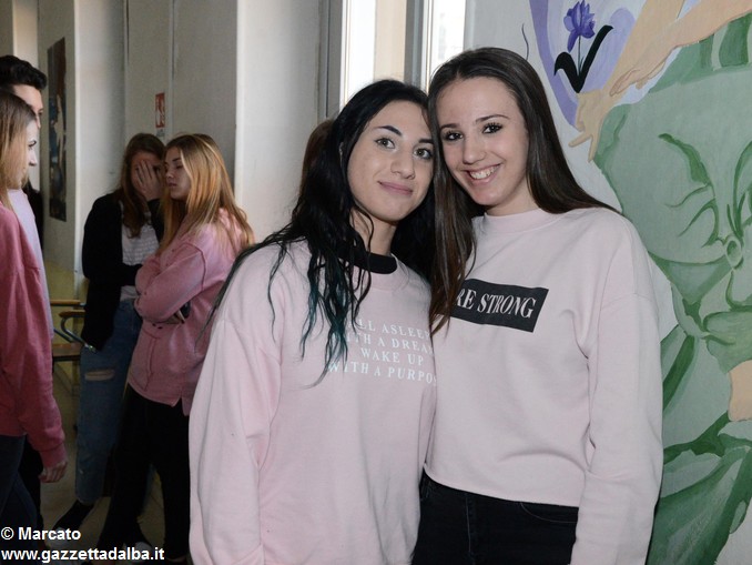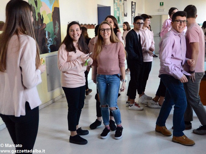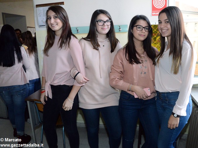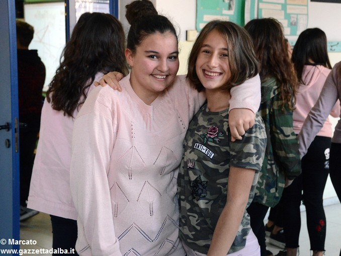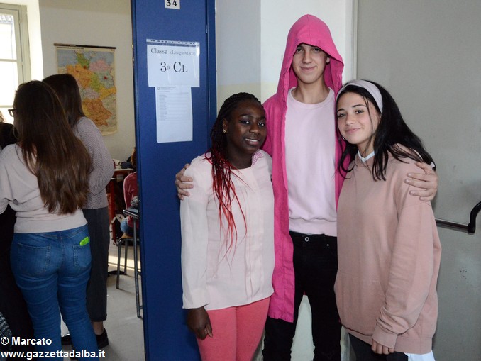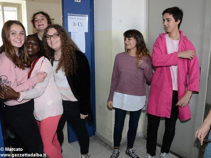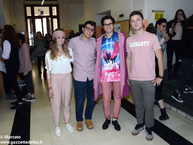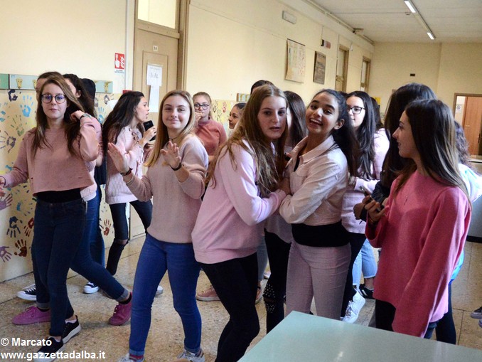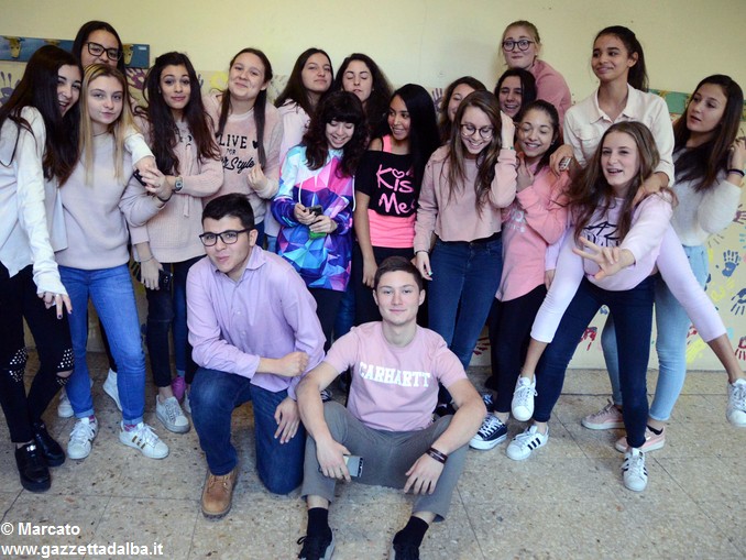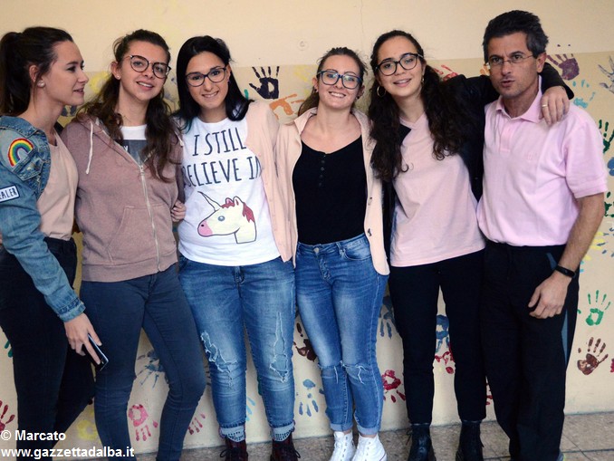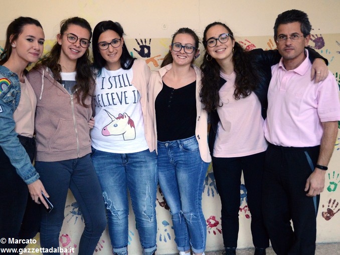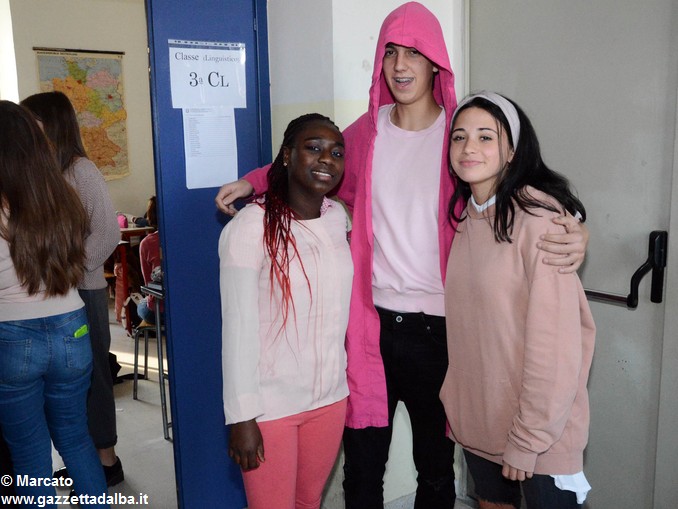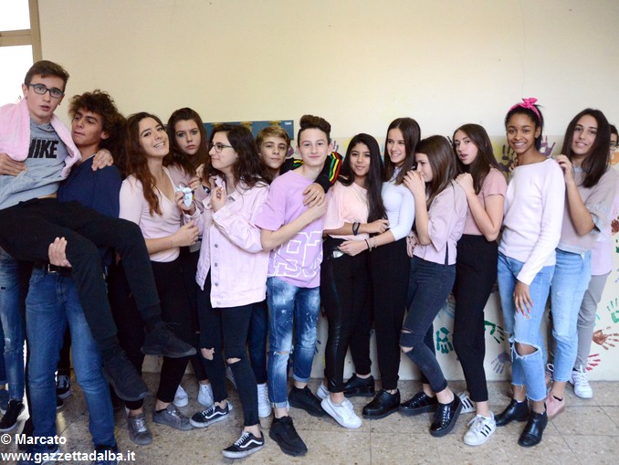 Indossare un capo di colore rosa era la proposta semplice, ma di forte impatto visivo (come testimonia la fotogallery qui sotto, realizzata da Severino Marcato), che i ragazzi hanno organizzato per il 22 novembre, anticipando quindi la data “ufficiale” di sabato 25 novembre, quando non sarebbero stati in aula, ma ad Alba si moltiplicheranno le iniziative.