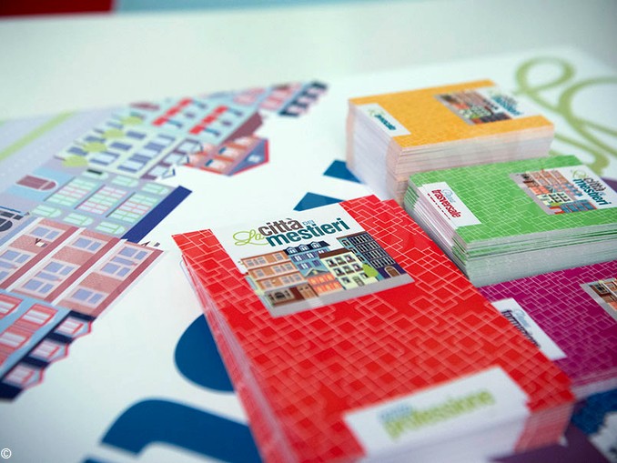 Il gioco educativo “La città dei mestieri” è un gioco di carte che si propone di far avvicinare i giovani in modo ludico al mondo del lavoro: i ragazzi potranno conoscere nuovi mestieri, ampliare le loro conoscenze su altri già conosciuti e riflettere sulla formazione e sulle competenze necessarie per svolgere determinate professioni. Il gioco può diventare un’occasione di confronto sul percorso di studio e professionale che più si avvicina alle abilità di ogni ragazzo.