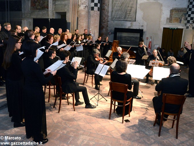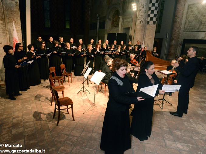 ALBA Con grande eleganza, maestria e, al contempo, freschezza il coro Intonando e i suoi giovanissimi solisti hanno eseguito le partiture affatto semplici scelte dal maestro Franco Biglino per il concerto “Aspettando Natale”, con il quale he ieri sera, venerdì 8 dicembre, nella chiesa di San Domenico ad Alba si sono festeggiati i 135 anni di Gazzetta d’Alba, oltre che l’apertura degli appuntamenti natalizi del coro mussottese.