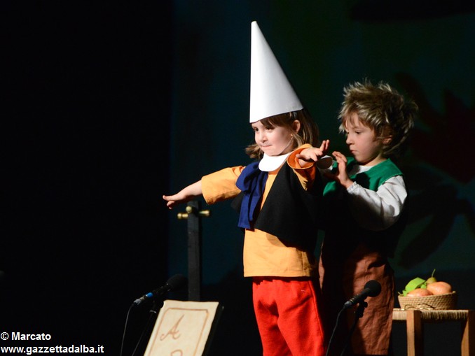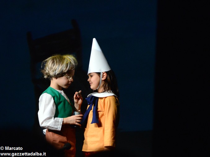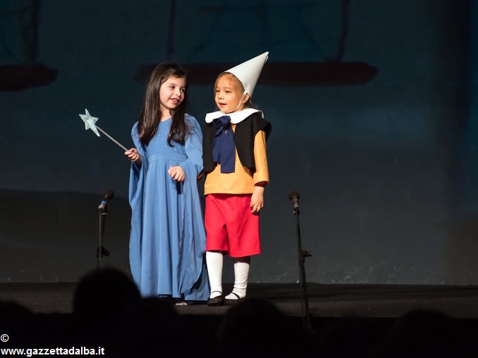 I piccoli attori, nelle foto qui sotto, hanno rappresentato le avventure del celebre burattino di Carlo Collodi. Due belle innovazioni li hanno accompagnati: le scenografie sono state realizzate animando digitalmente gli acquerelli preparati dai bambini durante i laboratori di creatività e la colonna sonora è stata eseguita dal vivo dai giovani flautisti, pianisti, chitarristi