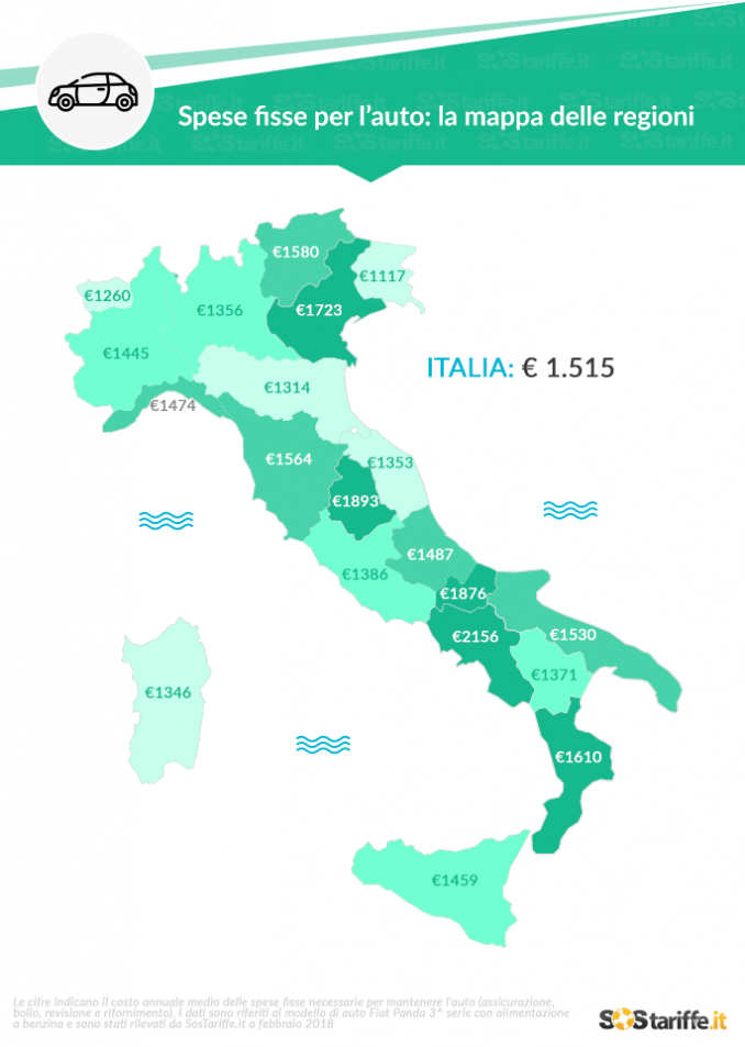 AUTO Per mantenere l’automobile in Italia si spendono in media 1.515 euro ogni anno. La Campania è la regione dove i costi sono più alti, 2.156 euro, mentre in Friuli Venezia Giulia rilevata la spesa minore 1.117 euro.