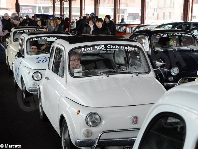 ALBA Nonostante il freddo e la pioggia battente domenica 18 marzo ad Alba, un centinaio di storiche Fiat 500 provenienti da nord e centro Italia sono arrivate in piazza Cagnasso per i “61 Anni 500 – XII edizione” organizzata dal Coordinamento Alba – Bra del Fiat 500 club Italia federato Asi, dedicata alla memoria di Luciano Susenna, carrozziere artigiano di Alba, scomparso all’inizio dell’anno 2016, e a Simone Zunato, ragazzo appassionato di Fiat 500 scomparso appena maggiorenne nel 2009.