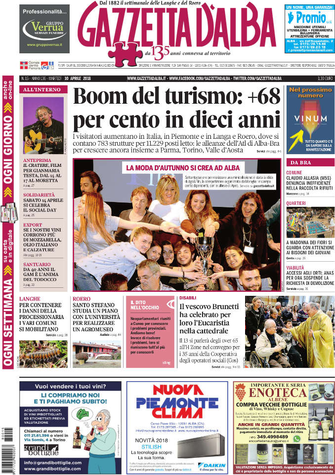 ALBA La prima pagina del numero 15 di Gazzetta d’Alba, che sarà disponibile in edicola e in formato digitale da martedì 10 aprile.