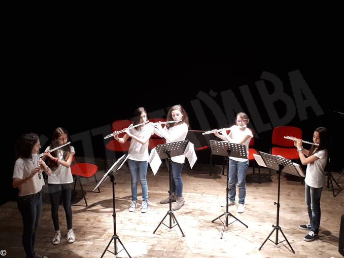 Busca Pertini sestetto flautiste prima sul palco a Busca Il sestetto delle flautiste di I A della scuola media Pertini