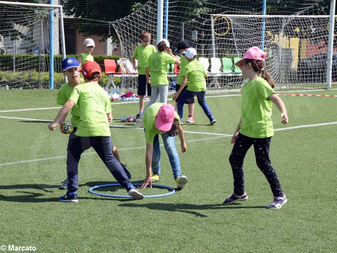 ALBA Festa di fine anno all’insegna dello sport per gli alunni della scuola primaria Coppino che, giovedì 7 giugno, hanno lasciato le aule per raggiungere il Village Kinder+sport. Vestiti con maglie di colori diversi a seconda della loro età, gli scolari albesi si sono divertiti con i giochi preparati per loro dai Ragazzi del Roero. Una merenda a base di pane e Nutella, offerta dalla Ferrero, ha poi ristorato tutti quanti.
