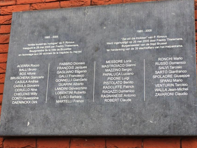 Proprio sotto la lapide che allo stadio di Bruxelles ricorda i nomi delle vittime è stata deposta una corona di fiori insieme a una rosa bianca in memoria di Erika Pioletti, la giovane travolta l’estate scorsa in Piazza San Carlo a Torino durante la finale di Champions League.