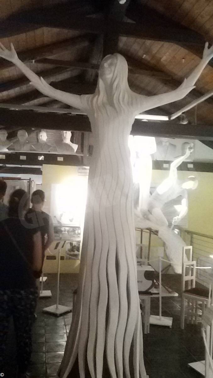 Le studentesse hanno illustrato l’interno della confraternita di San Francesco, il quale offre 34 metri di splendidi affreschi cinquecenteschi relativi alla Passione di Cristo dipinti da un anonimo artista, e la gotica parrocchia dell’Assunta che, con il castello e la torre campanaria eretta nel 1154, è il simbolo del borgo. La visita si è conclusa nella straordinaria gipsoteca di Gioacchino Chiesa, prolifico artista nato a Santa Vittoria nel 1937, noto a livello internazionale specialmente per le sue opere scultoree. A livello locale è conosciuto sopratutto per essere l’autore della Via Crucis del centro Ferrero e della statua dedicata al Rotary, per quanto riguarda Alba, e del Monumento ai caduti posto a Bra.