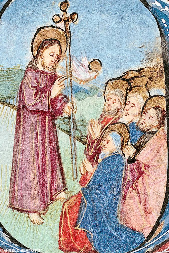 Gesù conferisce la missione agli apostoli (da una miniatura del XV secolo, Biblioteca braidense).