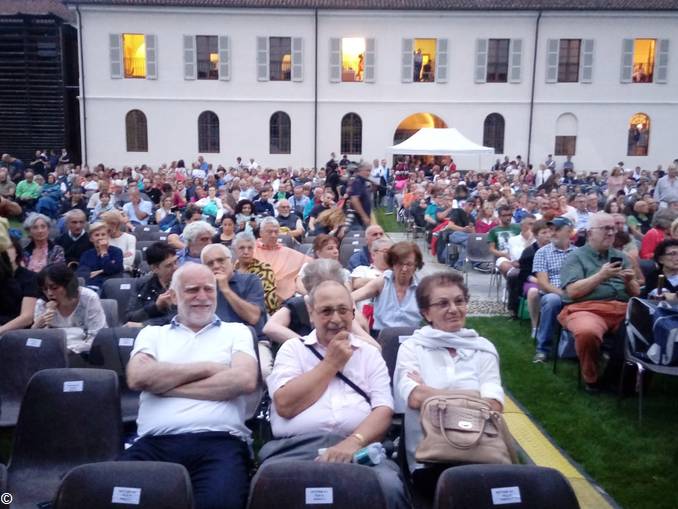 Serata che annuncia pioggia ma gia tuuto esaurito da un’ora e grande attesa nel cortile dell’università di Pollenzo