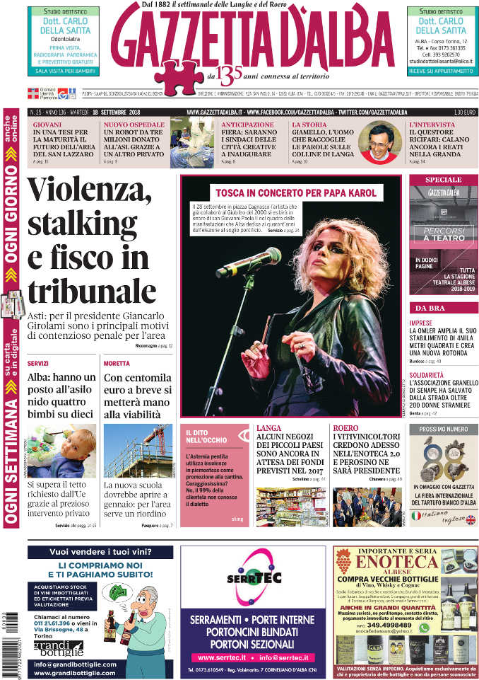ALBA La prima pagina del numero 35 di Gazzetta d’Alba, che sarà disponibile in edicola e in formato digitale da martedì 18 settembre.