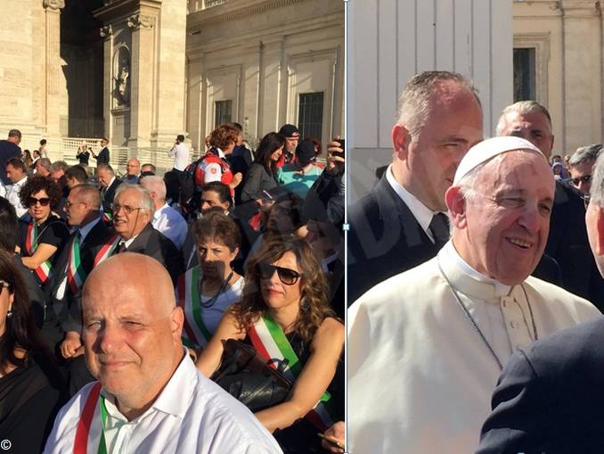 ROMA Mercoledì 5 settembre in piazza San Pietro, nella Città del Vaticano, il presidente dell’associazione nazionale Città del vino Floriano Zambon, insieme ad altri sindaci aderenti all’associazione, tra cui il primo cittadino albese Maurizio Marello, ha omaggiato Papa Francesco con una speciale bottiglia di vino da messa, un blend di diversi vini passiti della “Selezione del sindaco 2018” realizzata dall’enologo Roberto Cipresso.
