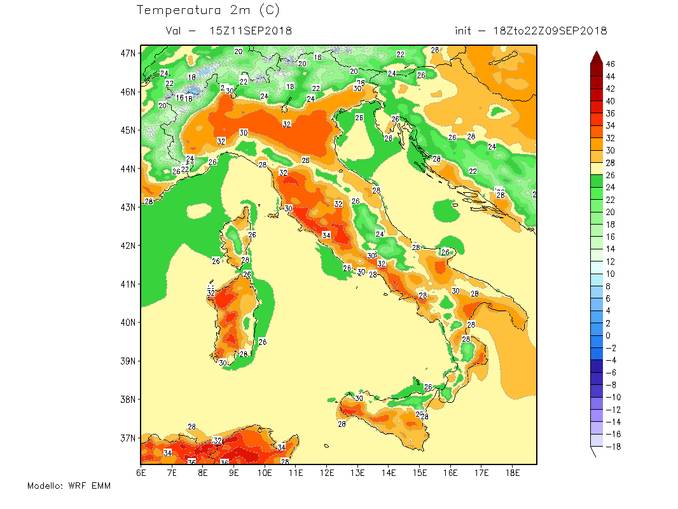Un leggero calo dei geopotenziali in quota favorirà lo sviluppo un po’ più diffuso di instabilità pomeridiana sui rilievi che occasionalmente potrà raggiungere le pianure tra giovedì e venerdì (migliorerebbe da sabato), ma senza influire più di tanto sulle temperature che rimarranno stazionarie almeno fino al week-end.