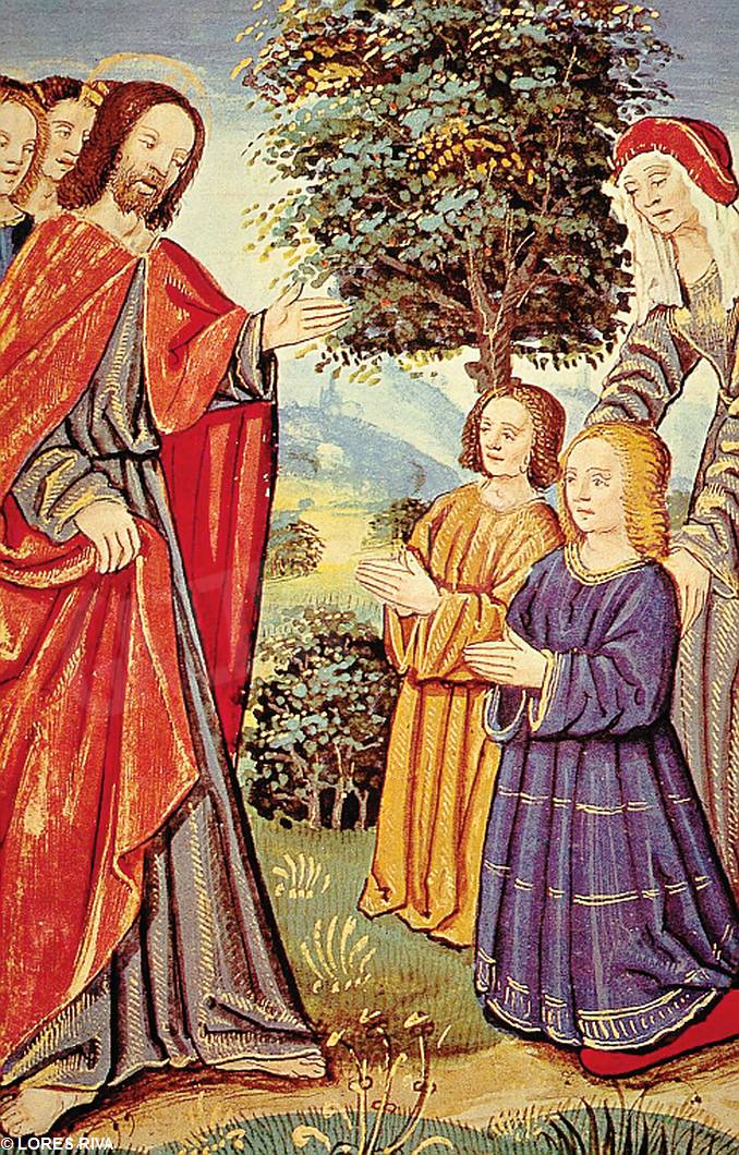 Gesù con i fanciulli, miniatura tratta da una Vita di Cristo del XVI sec. (Lione, biblioteca comunale).