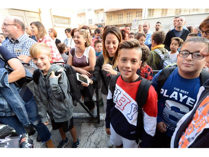 Ecco le immagini dei ragazzi assiepati davanti all’ingresso della scuola media Pertini, che si distingue per la sezione a indirizzo musicale
